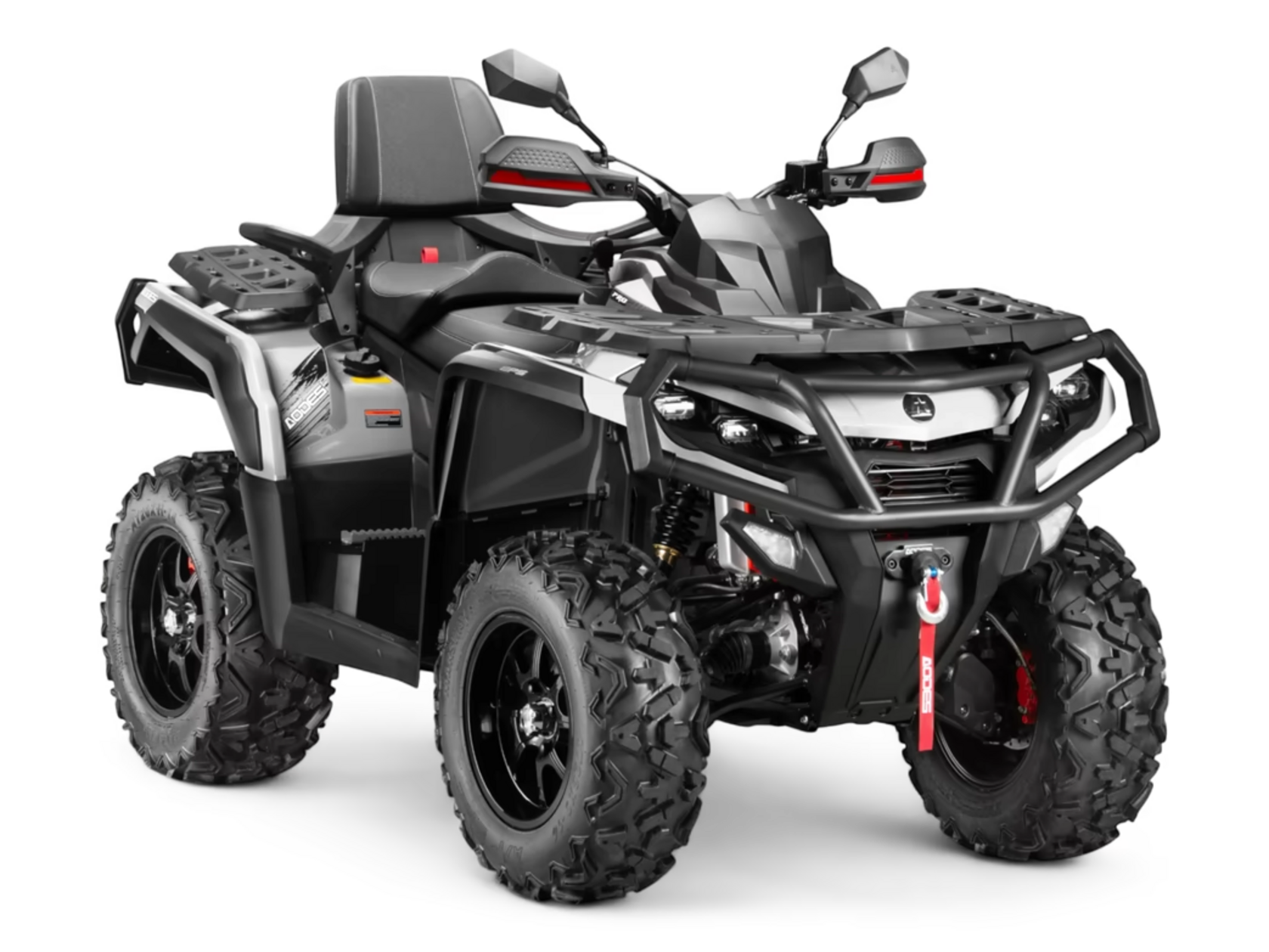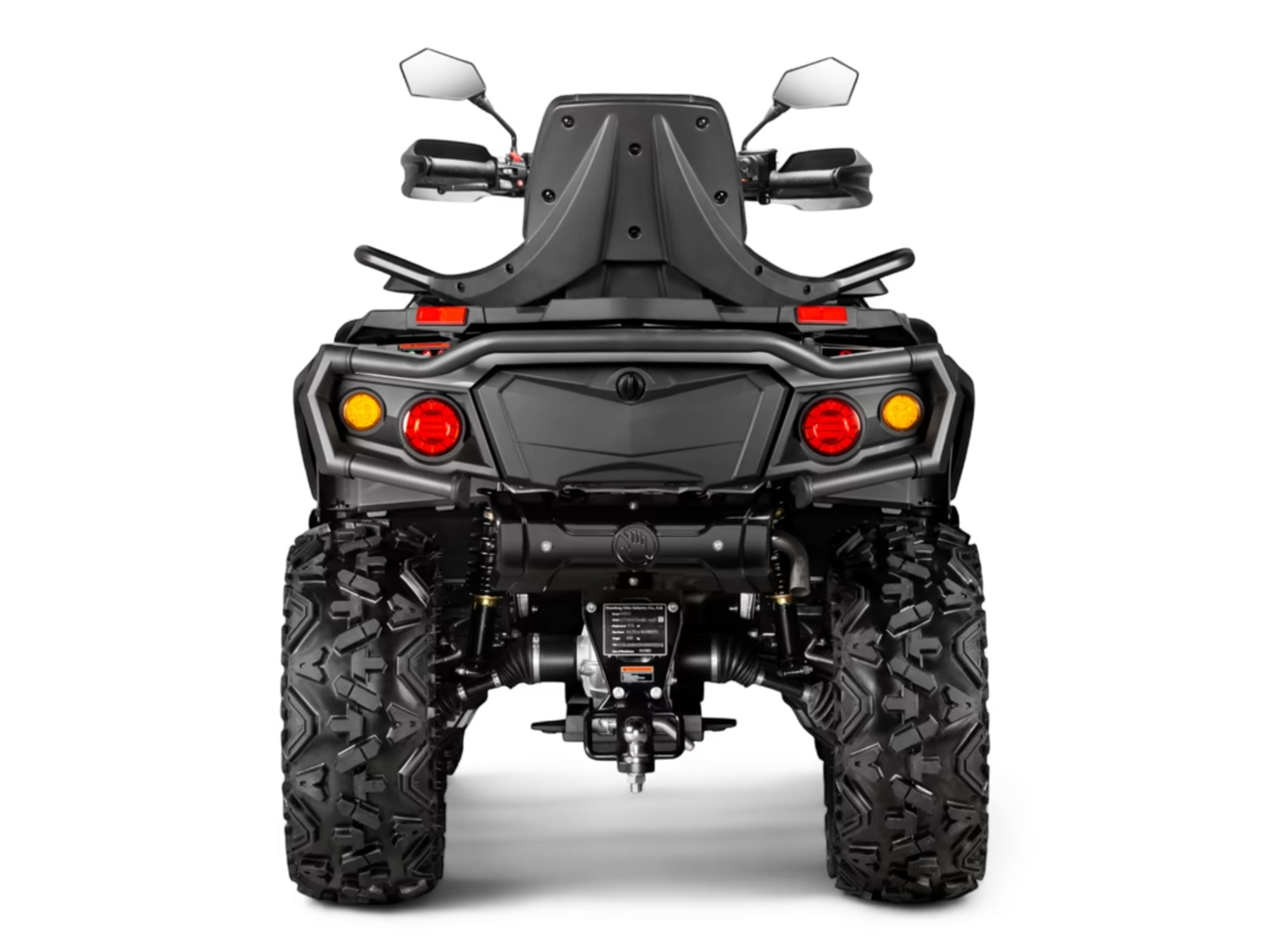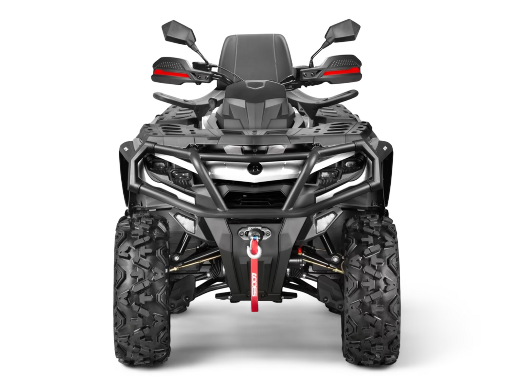 Электроусилитель руля, cветодиодная оптика, дополнительный свет, фаркоп с электроподготовкой, звуковой сигнал, сигналы поворота, зеркала заднего вида, бардачок объемом 2 литра под сиденьем, алюминиевые подножки водителя, эргономичная задняя и передняя багажные площадки, розетка 12 Вольт и USB. Лебедка с синтетическим тросом и тросоукладчиком, тяговое усилие 1500 кг