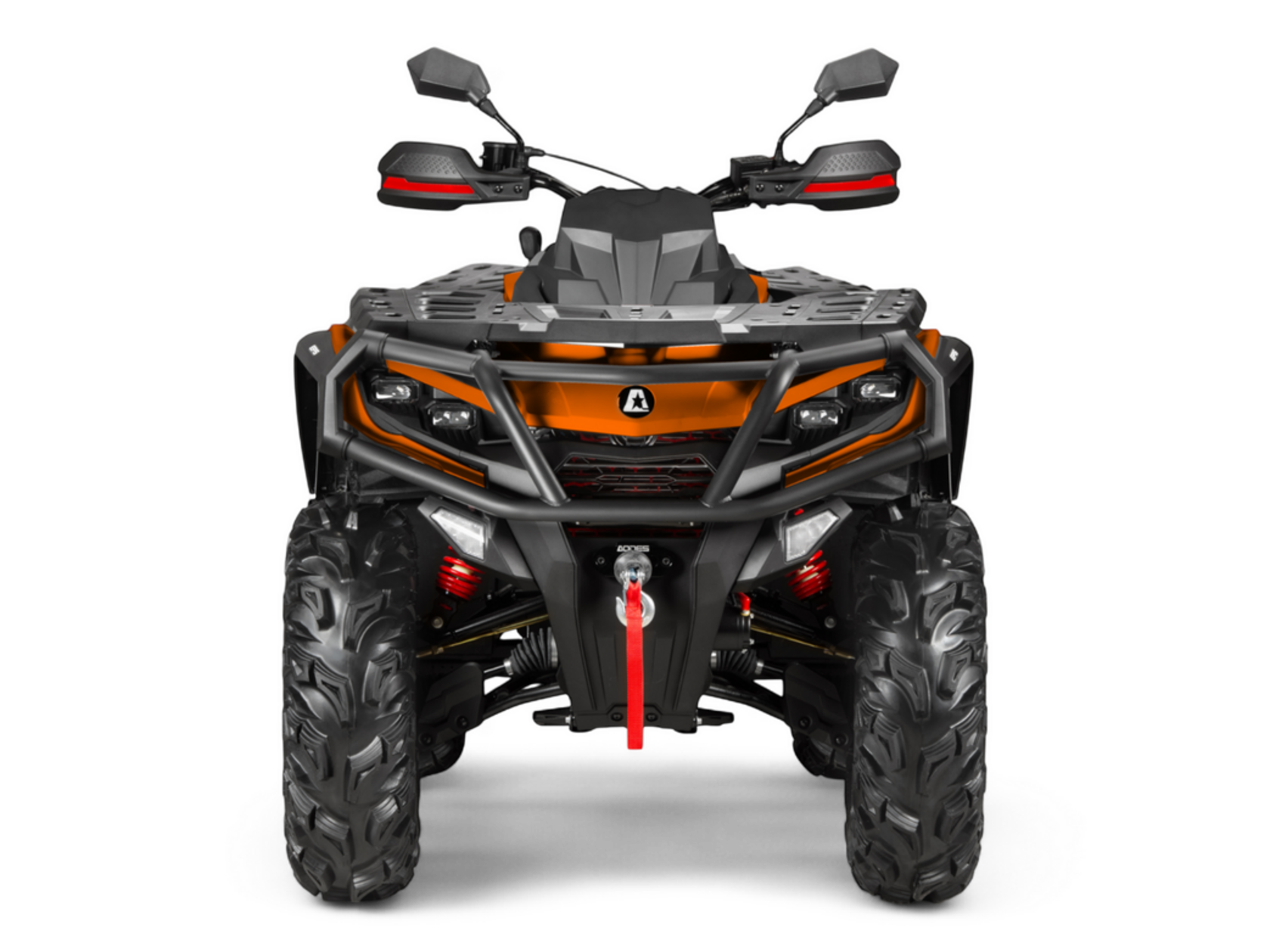 Электроусилитель руля, светодиодная оптика, дополнительный свет, фаркоп, вынос радиатора и шноркелей, звуковой сигнал, сигналы поворота, зеркала заднего вида, бардачок объемом 2 литра под сиденьем, алюминиевые подножки водителя, эргономичная задняя багажная площадка, розетка 12 Вольт и USB. Лебедка с синтетическим тросом и тросоукладчиком, тяговое усилие 1500 кг., с пультом ДУ