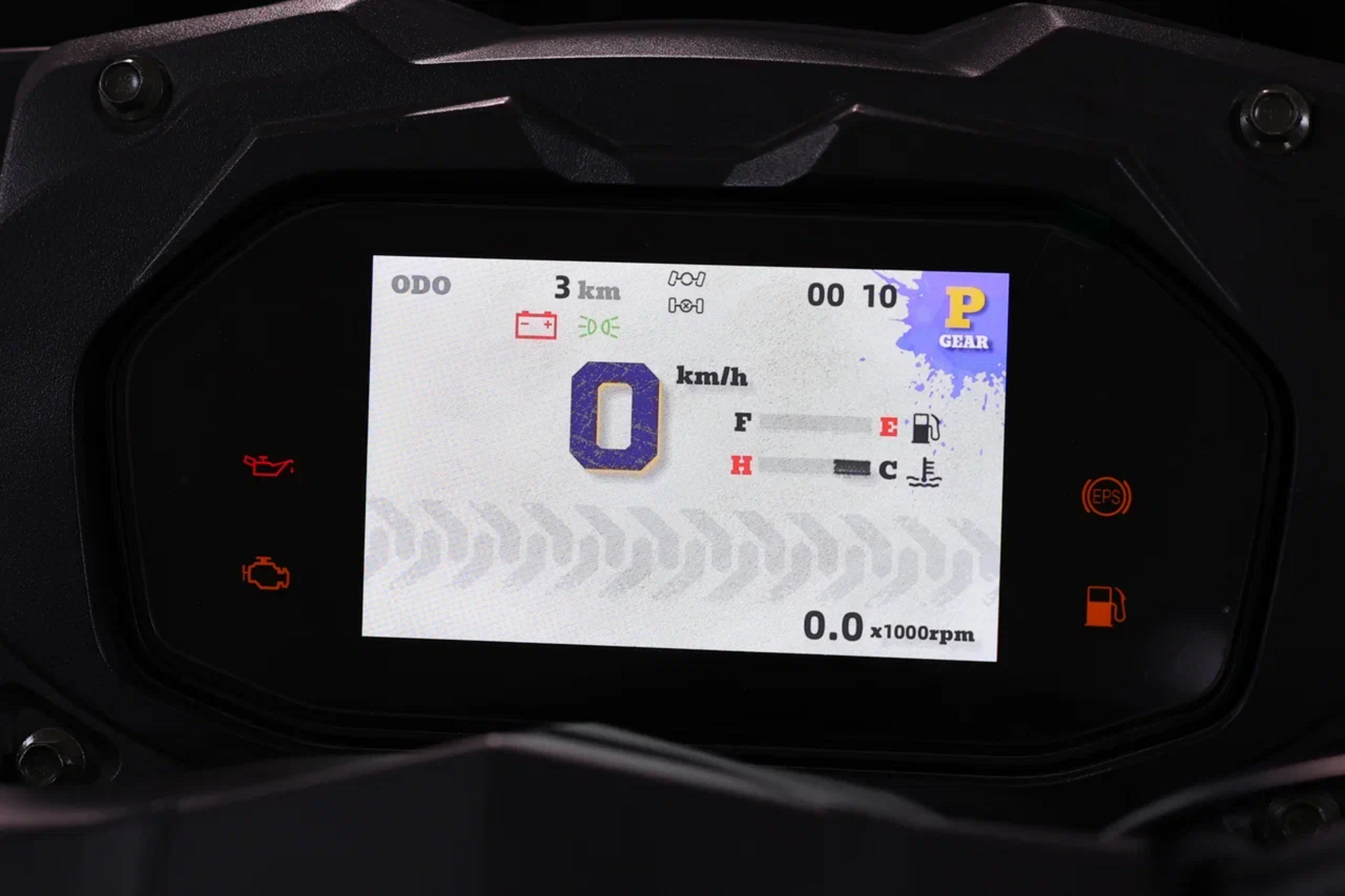 Спидометр, одометр, тахометр, счётчики пробега и моточасов, индикатор температуры, вольтметр, часы, индикатор включённой передачи, индикаторы неисправности системы управления двигателем, индикатор уровня топлива, датчик критической температуры, розетка постоянного тока, лебедка 3500 lbs / 1587 кг