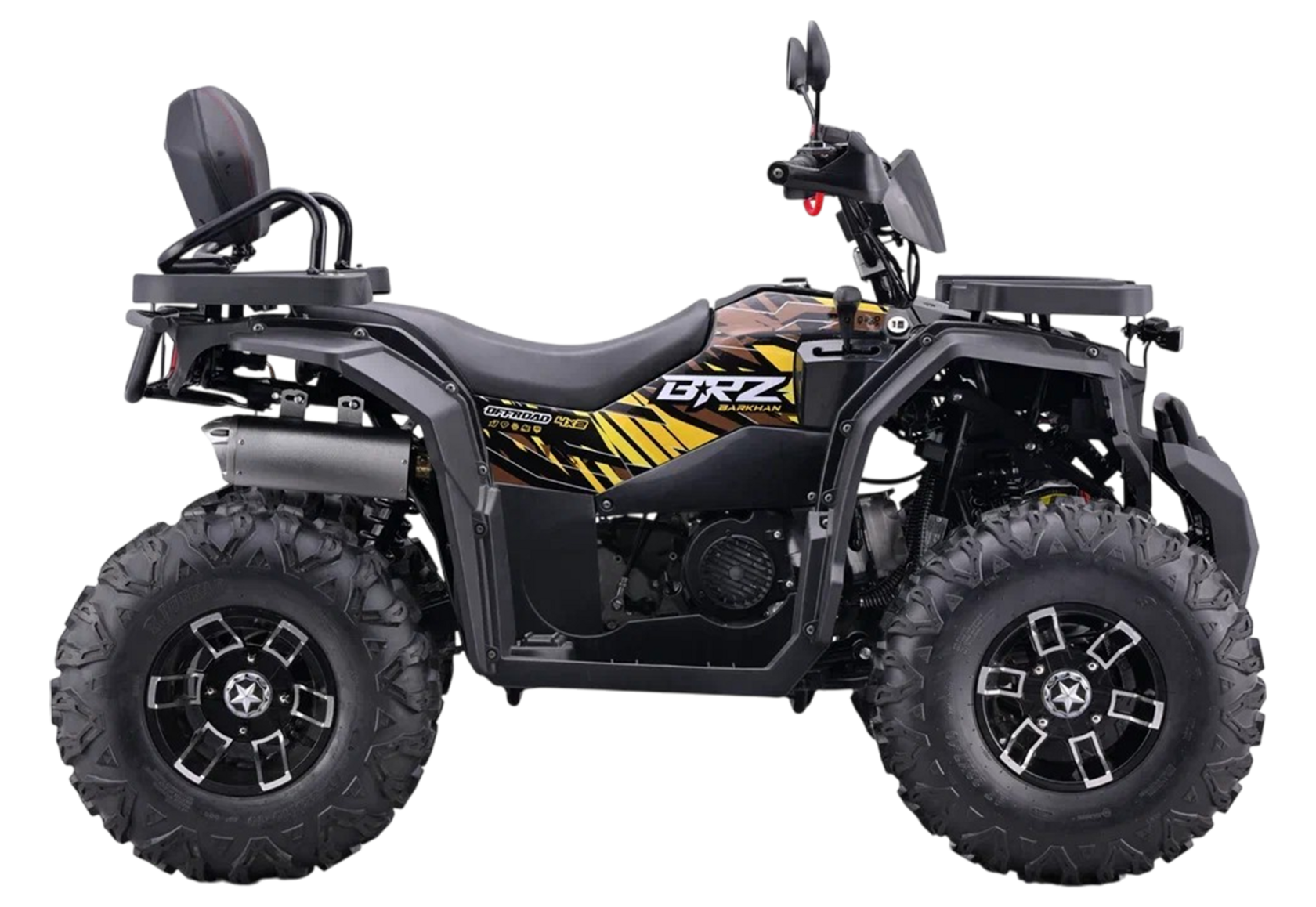 – Колёса 10 дюймов с внедорожной резиной — держат трассу как надо
