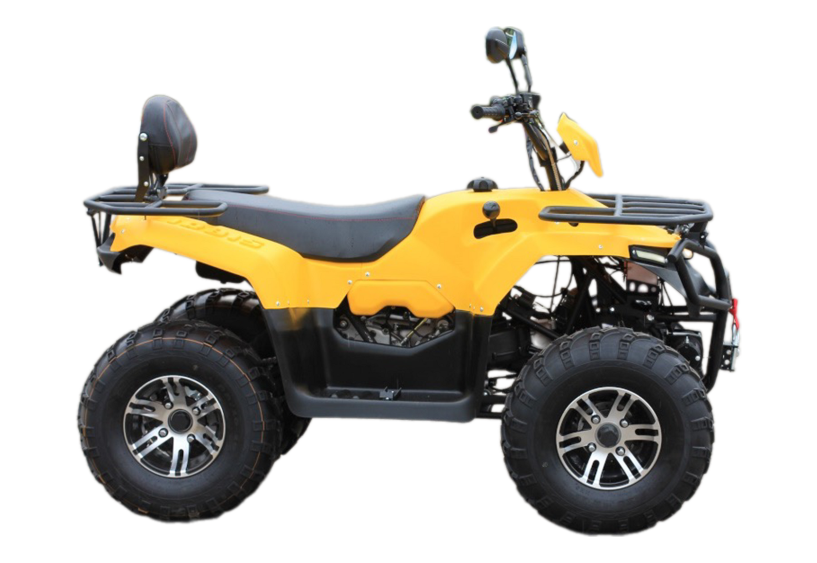 Независимая передняя подвеска позволяет легко маневрировать и держать уверенно курс. В наличие задний ход. На квадроцикле установлены большие внедорожные шины размером 23 дюйма передние и 22 дюйма задние. На задней оси установлены дополнительные защитные кожухи.