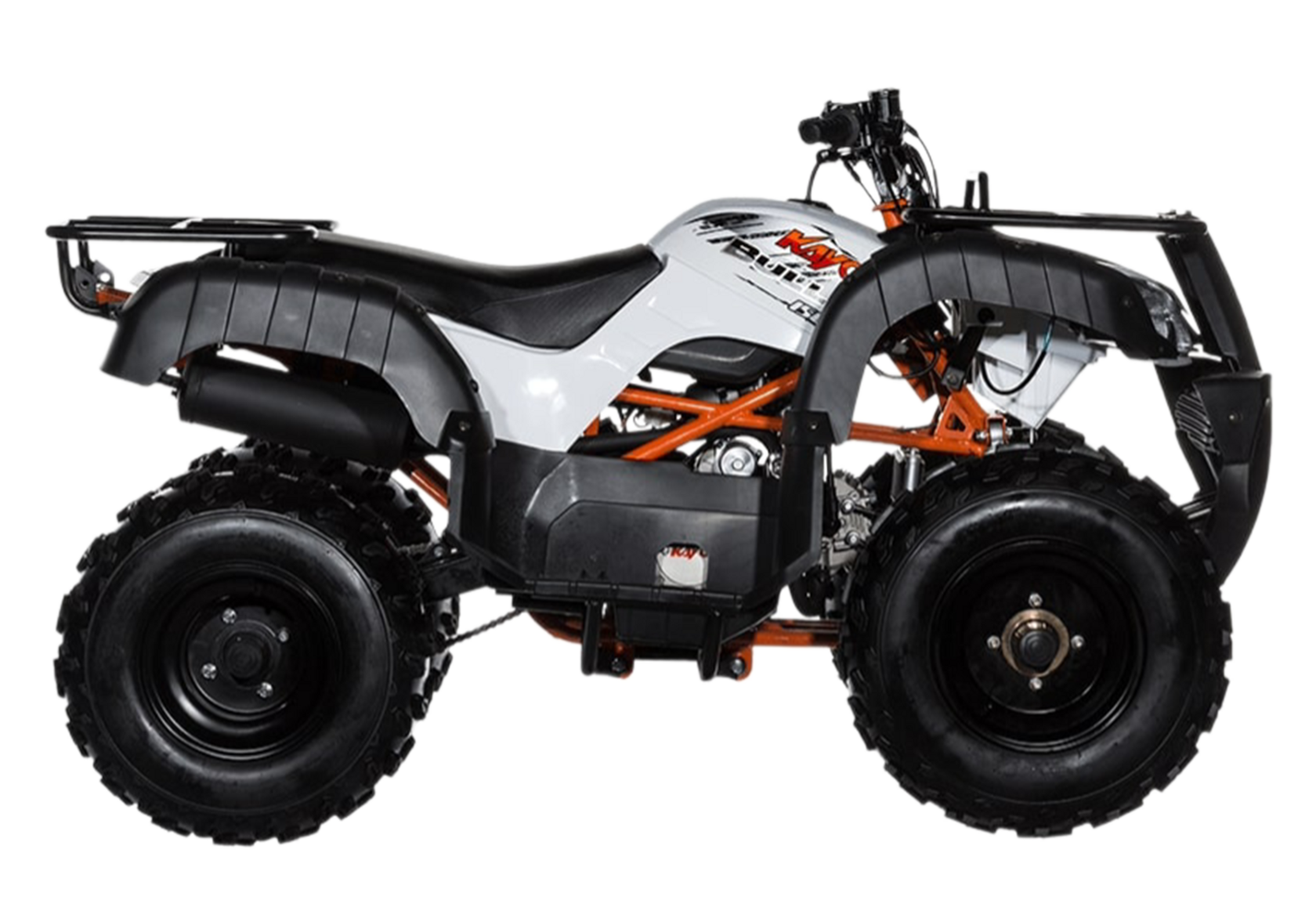 Kayo AU150 базируется на стальной раме, разработанной инженерами Kayo, и оснащается 4-тактным 150-кубовым двигателем YX, позволяющим развивать максимальный крутящий момент в 9,2 Hm при 6500 об/мин. Максимальная развиваемая скорость, заявленная производителем, – свыше 75 км/ч; бак для горючего, вмещающий более 7 литров топлива, обеспечит новинке приличный запас хода. Квадроцикл отличают полуавтоматическое сцепление, наличие электростартера и системы управления зажиганием CDI. На квадроцикле применена цепная трансмиссия; общее количество передач – четыре, среди них есть и задняя передача. Колеса оснащены надежными дисковыми тормозами; диаметр передних колес со стальными ободьями – 10 дюймов, размер задней пары колес – 9 дюймов. Большей надежности добавляет наличие обслуживаемой подвески, что увеличивает срок ее службы, а также удобства сервисного обслуживания. Kayo AU150 Bull – утилитарная модель квадроцикла, поэтому конструкторы предусмотрели полную влаго- и грязезащиту, также на «квадрике» установлены фара, звуковой сигнал, багажные решетки спереди и сзади.