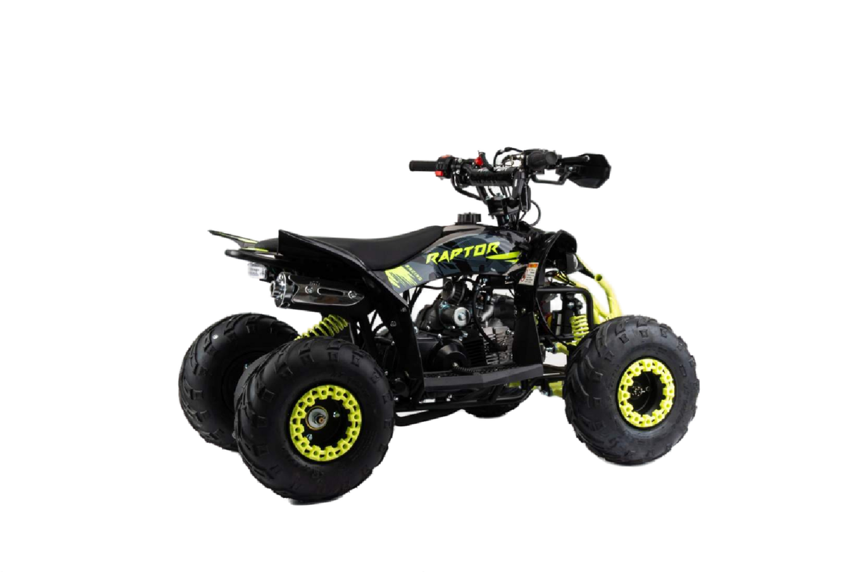 1Квадроцикл Motoland 110 RAPTOR A cтильный, современный, квадроцикл подойдет вашему ребенку как мальчику, так и девочке. Его спортивный дизайн разработан с учетом вкусов современного поколения и понравится всем без исключения. Квадроцикл не предназначен для дорог общественного пользования. Его 6 дюймовые колеса на хорошей внедорожной резине с легкостью преодолеют все преграды в виде грязи, песка, луж и кочек. А что еще нужно для веселых покатушек в выходные дни? У этого квадроцикла отличная управляемость в любых условиях эксплуатации, благодаря грамотной настройке подвески. Данный квадроцикл оснащен вариатором с реверсом, который установлен на усиленной раме, что дает уверенность в прочности конструкции.Ваш ребенок быстро овладеет навыками езды на данной технике и получит массу запоминающихся эмоций. Квадроцикл оснащен двигателем 1P39FMA 110 см3, мощностью 7 л.с. c воздушным охлаждением, электрстартером, светодиодной оптикой, стоп-сигналом. Тормозная система: передние - барабаны / задний - гидравлический дисковый.Для безопасности имеется чека отключения двигателя, если ребенок отпускает руль, то мотоцикл практически сразу отключается при разрыве чеки.