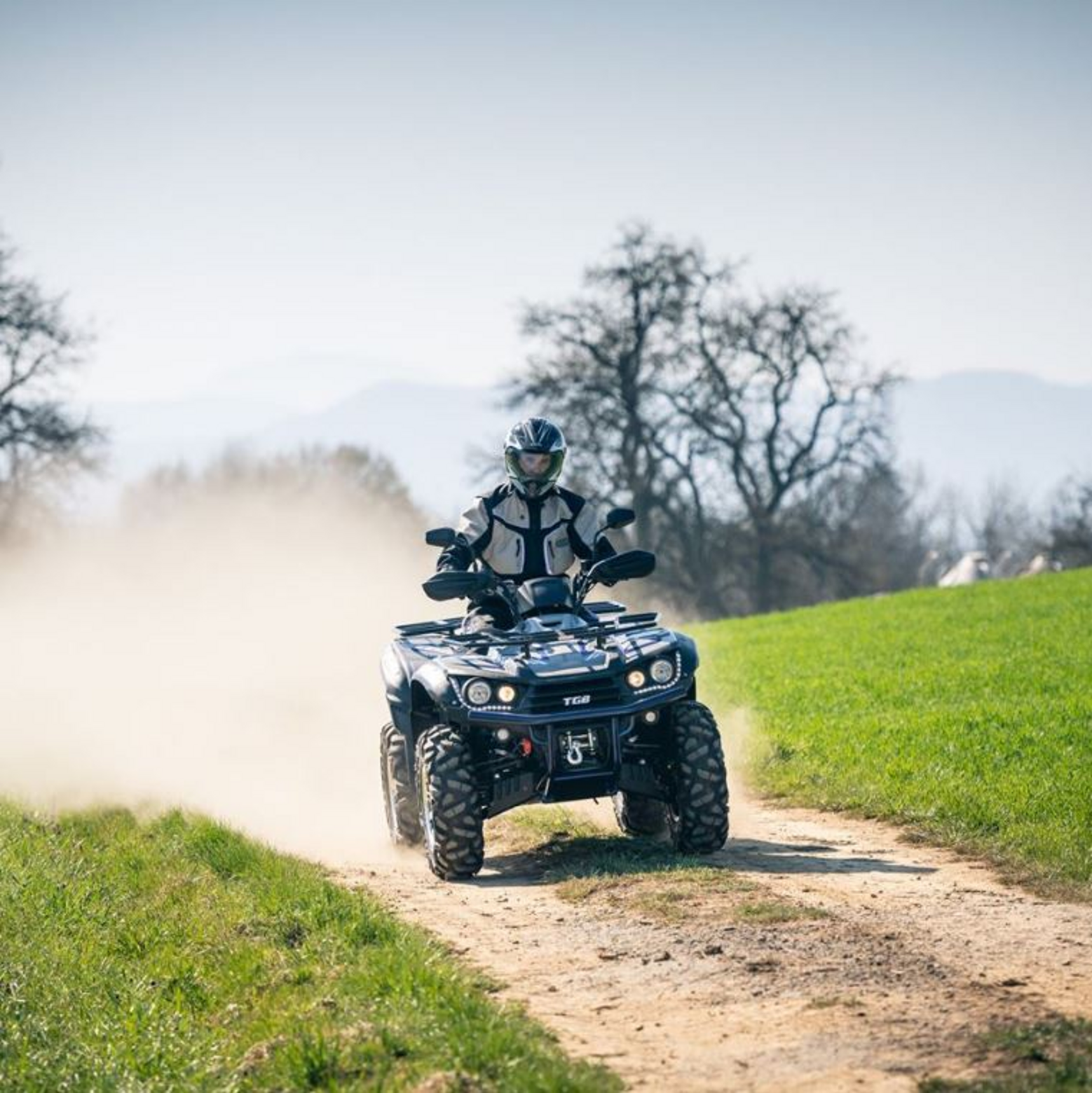 Квадроцикл TGB Blade 550 - это мощный, полноприводный квадроцикл, разработанный компанией TGB (Taiwan Golden Bee Co. Ltd.). Он оснащен двигателем объемом 550 кубических сантиметров, который развивает максимальную мощность 39 лошадиных сил и максимальный крутящий момент 45 Нм при 6500 оборотах в минуту.Система полного привода позволяет ему справляться с пересеченной местностью и неудобными дорогами. Дизайн TGB Blade 550 выполнен в спортивном стиле с яркой расцветкой. Квадроцикл имеет прочную стальную раму и надежную подвеску, которая обеспечивает комфортную и безопасную езду на любой поверхности.Квадроцикл TGB Blade 550 также оснащен мощной тормозной системой, что обеспечивает безопасность вождения. Он также имеет электрический стартер и достаточно большой бензобак на 18 литров.Использование квадроцикла TGB Blade 550 может быть разнообразным, он подходит для езды по бездорожью и пересеченной местности, а также может использоваться для ведения сельскохозяйственных работ. Это отличный выбор для любителей активного отдыха и профессионалов, которые нуждаются в надежном транспорте.