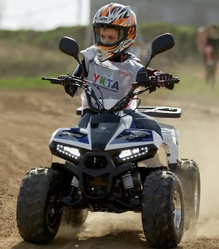 Этот детский бензиновый квадроцикл станет отличным первым серьезным транспортным средством для ребенка от 4-х лет.