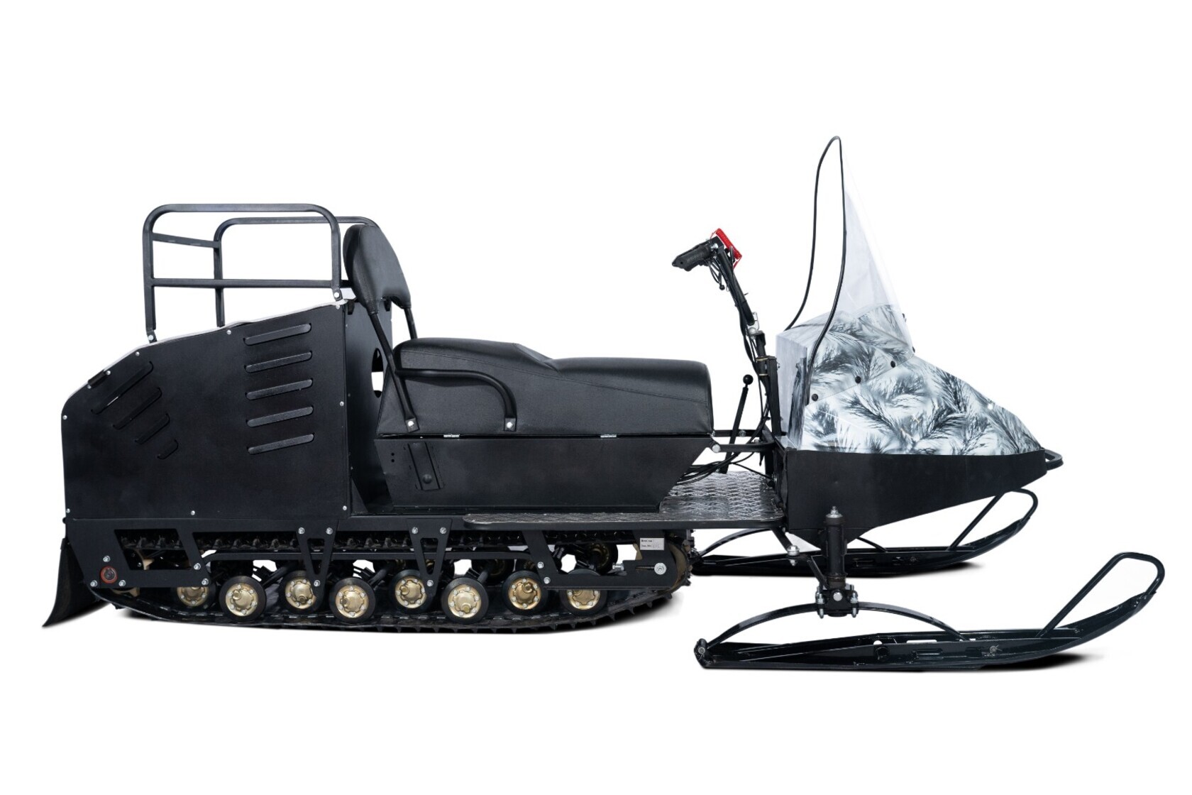 Бурлак Егерь Экспедитор - миниснегоход на раме от мотобуксировщика Бурлак-М Экспедитор с задним расположением двигателя и лыжным модулем от миниснегохода Бурлак-М Егерь.Оснащен 18.5 сильным двигателем Lifan / Loncin. Модель с комфортным сидением снегоходного типа и установленным под ним кофром. В качестве доп.опций можно установить съемный багажник, электрозапуск, подогрев ручек руля и курка газа.