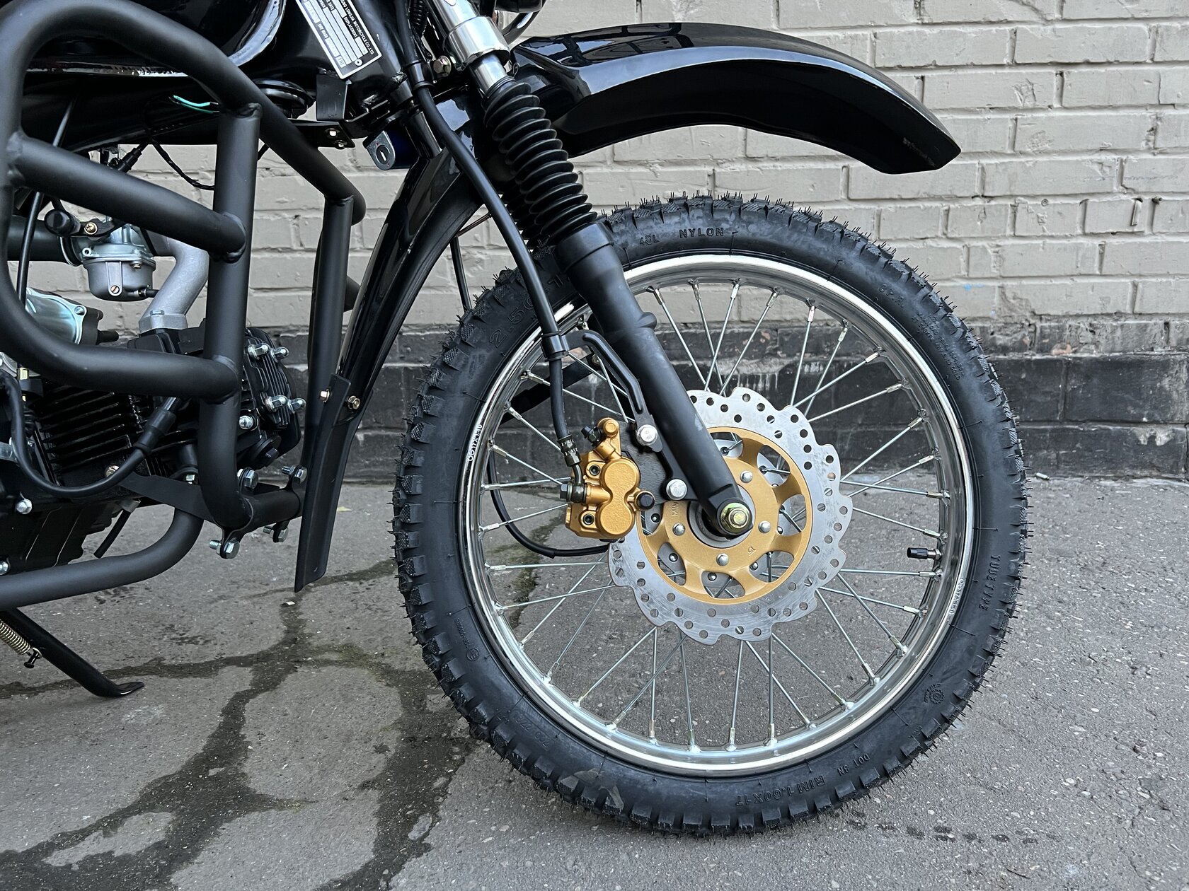 Из особенностей комплектации данной модели следует отметить спицованые колеса и переднее крыло «кроссового» типа, из гибкого и прочного пластика. Высокий клиренс и подбор комплектующих для этой модификации мопеда Alpha говорит о готовности мототехники к использованию на проселочных дорогах и тропинках бездорожья, где также пригодятся комплектные багажники для крепления кофров и транспортировки грузов, располагающиеся спереди над фарой и позади сиденья. Возможности перевозки полезных грузов дополняют боковые складывающиеся платформы, которые размещены у заднего колеса с левой и с правой стороны.