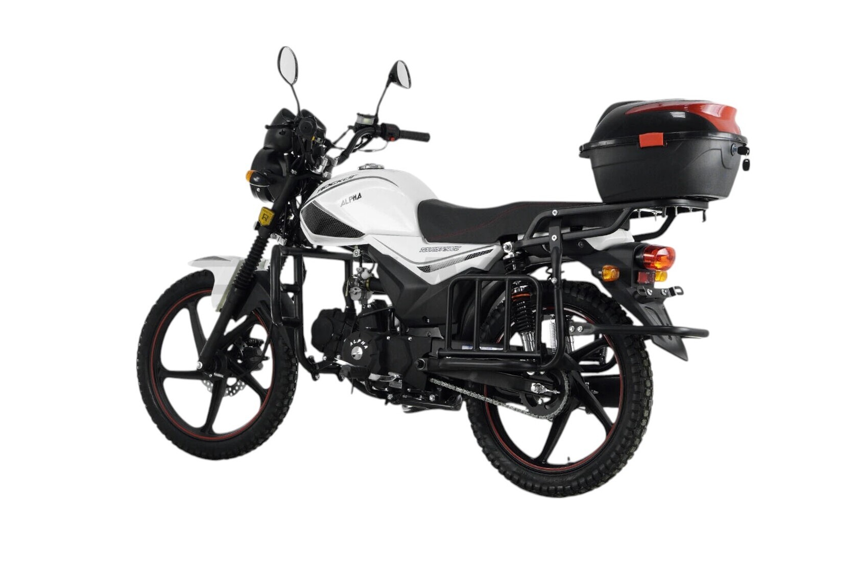 Мопед ROCKOT ALPHA TOURIST M-12 - всем известная классика в усовершенствованном исполнении. Надежный двигатель, в основу конструкции которого взяли мотор Honda CUB,имеет объем 125 куб.см. Воздушного охлаждения, установлен электростартер. Мопед оснащен эргономичным пассажирским местом и вместительным багажником.Сиденье отличается повышенной комфортностью, и уместиться на нем могут даже двое взрослых.Одним из главных плюсов модели является комфортность и плавность передвижения. Это позволяет совершать поездки на длительные расстояния. Посадка сиденья достаточно удобная и высокая, подставки для ног находятся там, где им следует быть, а руль имеет корректный плавный изгиб.Приборная панель отличается информативностью. Большие размеры тахометра и спидометра позволяют быстро считывать показатели в любых погодных условиях.Прекрасно подойдет для перемещения как в городском потоке, так и для путешествий за городом. Не требует регистрации.