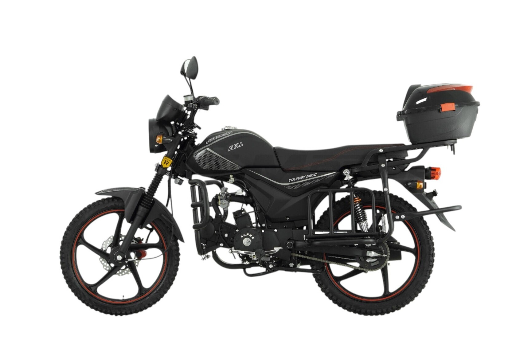 Мопед ROCKOT ALPHA TOURIST M-12 - всем известная классика в усовершенствованном исполнении. Надежный двигатель, в основу конструкции которого взяли мотор Honda CUB,имеет объем 125 куб.см. Воздушного охлаждения, установлен электростартер. Мопед оснащен эргономичным пассажирским местом и вместительным багажником.Сиденье отличается повышенной комфортностью, и уместиться на нем могут даже двое взрослых.Одним из главных плюсов модели является комфортность и плавность передвижения. Это позволяет совершать поездки на длительные расстояния. Посадка сиденья достаточно удобная и высокая, подставки для ног находятся там, где им следует быть, а руль имеет корректный плавный изгиб.Приборная панель отличается информативностью. Большие размеры тахометра и спидометра позволяют быстро считывать показатели в любых погодных условиях.Прекрасно подойдет для перемещения как в городском потоке, так и для путешествий за городом. Не требует регистрации.