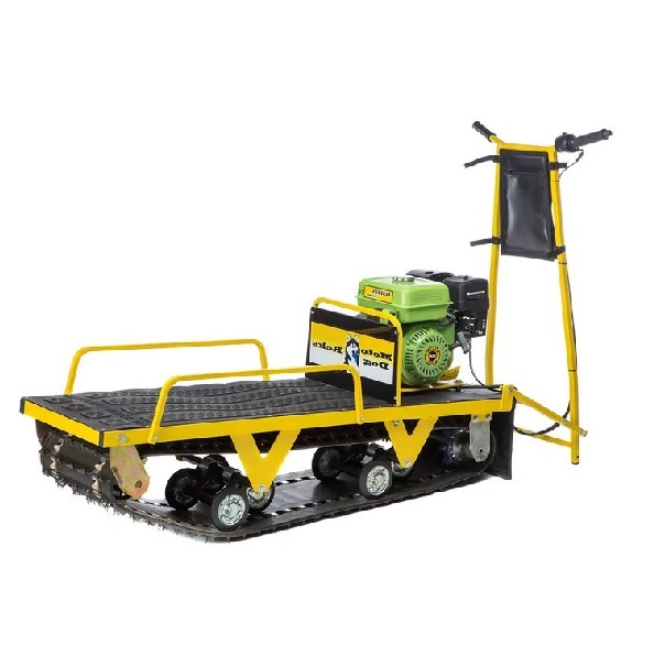 Мотособака оснащена 4 тактным мотором мощностью 7 лошадиных сил, что позволяет набирать скорость до 22 км/ч. Это максимальная скорость, которая позволит владельцу быстро перевезти груз 230 кг. Объем двигателя достигает 200 кубов, а объем топливного бака - 3,5 литров, что значительно в совокупности сказывается на мощности и производительности мотобукса.