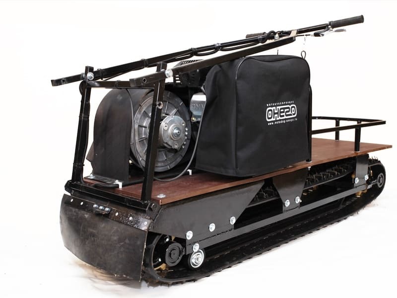 Мотобукс весит 72 кг, а размеры машины составляют 111 см в длину, 50 см в ширину и 66 см в высоту. Модель оснащена гусеницей с отличным сцеплением с поверхностью льда и снега шириной 380 мм. Гусеница в сочетании с катковой подвеской способна проходить спокойно по льду и даже по территории без снега.