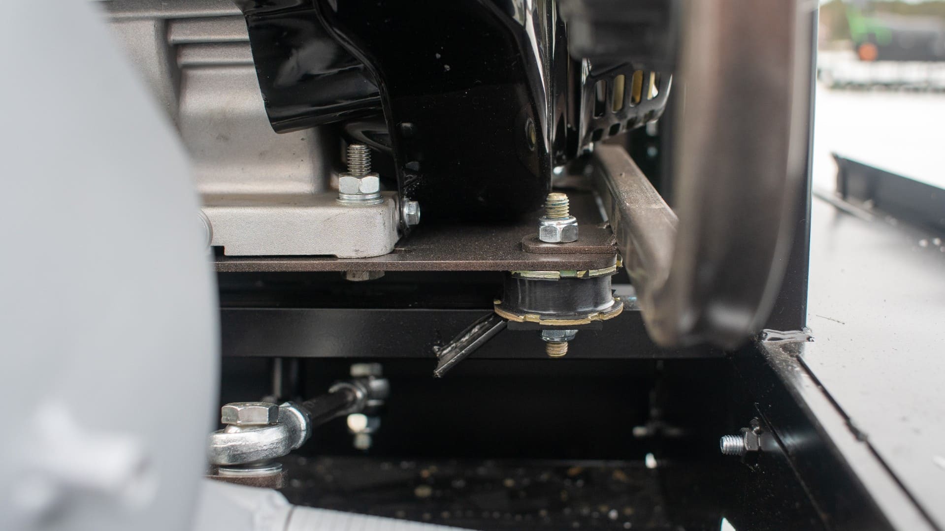 Снегокат оснащен защитой двигателя, улучшенной задней подвеской с амортизатором. Гусеница имеет длину 2828 мм и ширину 500 мм. Снегоход также имеет простую и надежную переднюю 2-х лыжную рессорную подвеску и стальные лыжи, что обеспечивает отличную управляемость и маневренность.
