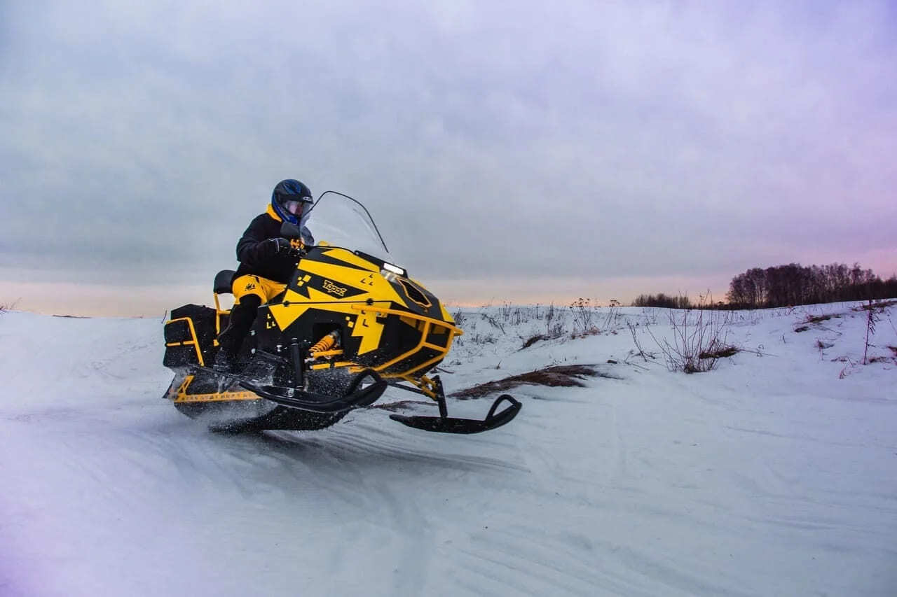 Гусеницы снегохода отличаются четким сцеплением со снегом и обеспечивают безопасность райдеру. Особенно это важно, когда речь идет о подъемах по заснеженным тропам. На снегоходе установлена: передняя подвеска — рычажная с амортизатором.