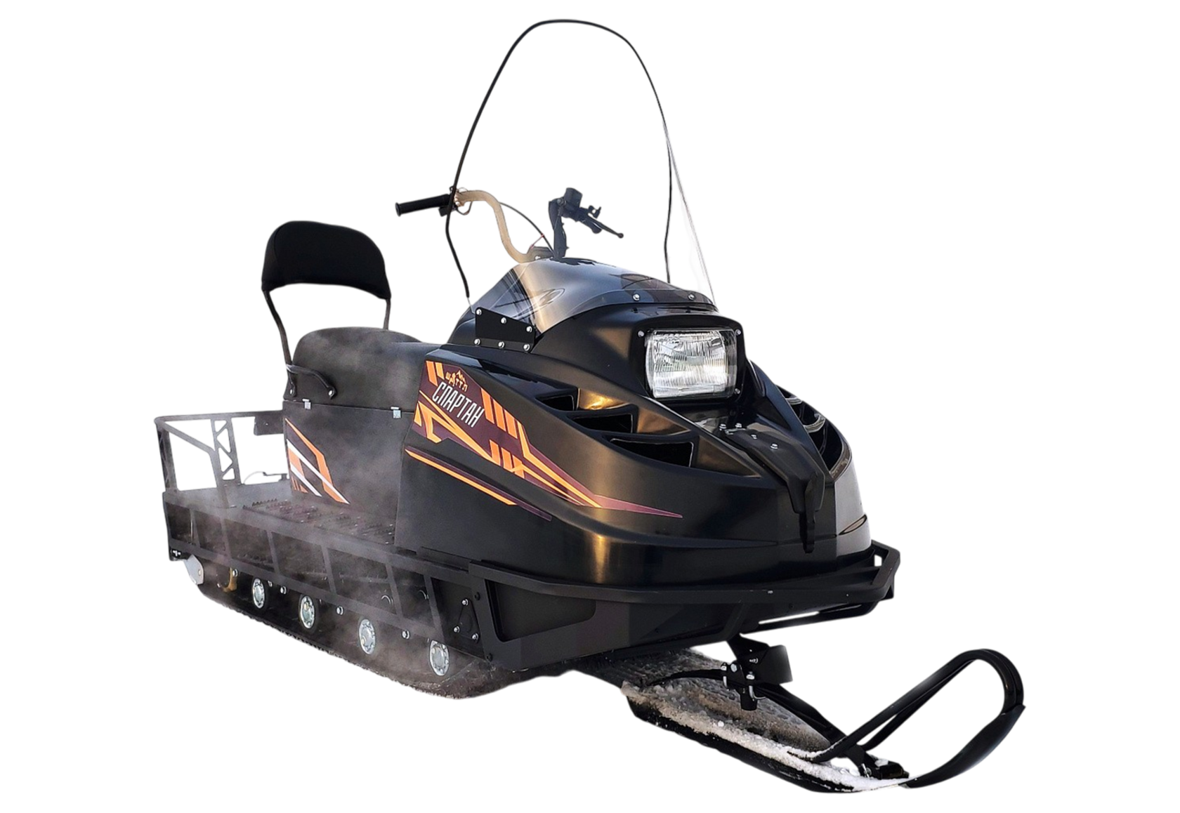 TERRATRACK СПАРТАН Модерн — современная версия классического снегохода «Спартан», созданная для тяжёлых условий охоты, рыбалки и доставки грузов. Это надёжная техника с усиленной рамой и обновлённым дизайном, остающаяся верной философии утилитарности.Основные особенностиРама: Каркас изготовлен из стали толщиной 1,5 мм с усилителями в местах подножек, что обеспечивает типичную для моделей Spartan долговечность и стойкость в суровых условиях.Двигатели на выбор:– Loncin LC2V80FD, ~30 л. с.,